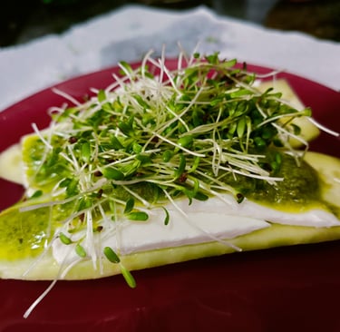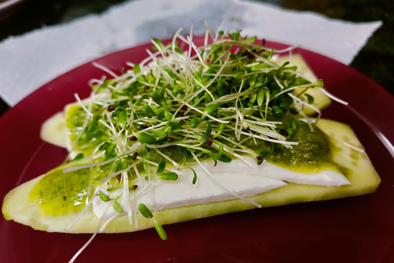 Pepino,queso blanco y brotes de alfalfa