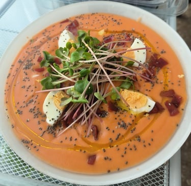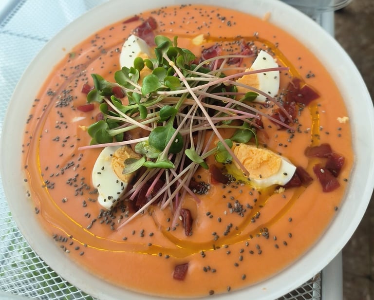 Salmorejo con brotes de rabanito