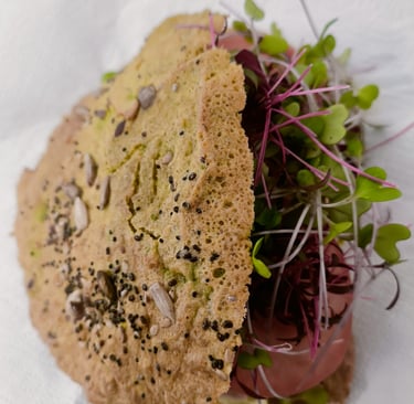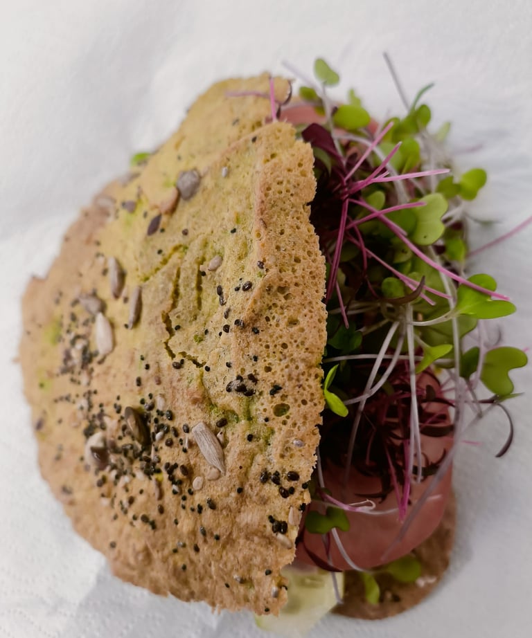 Sandwich con pan de aguacate con brotes de remolacha,amaranto y brocoli