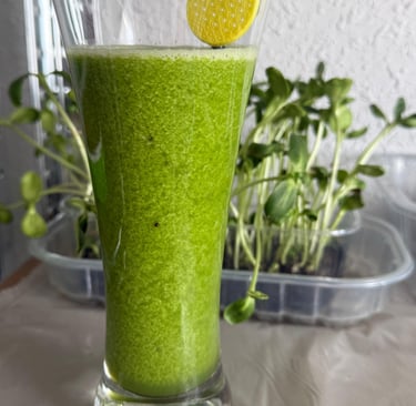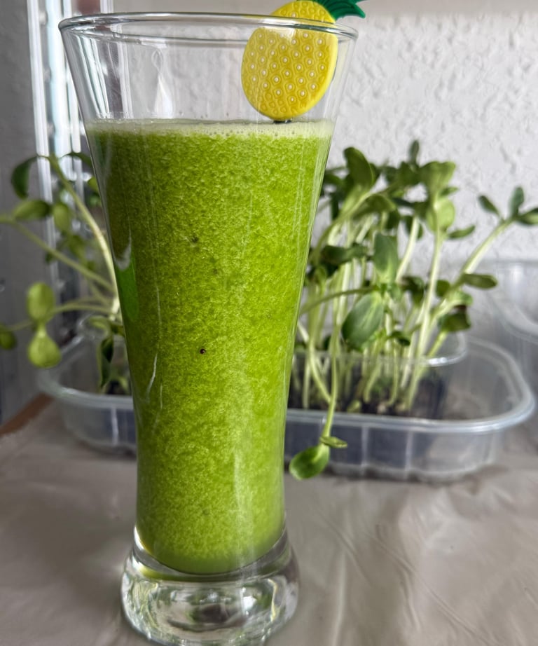 Smothie de kiwi,manzana,apio con brotes de girasol y un toque de limon